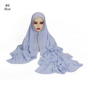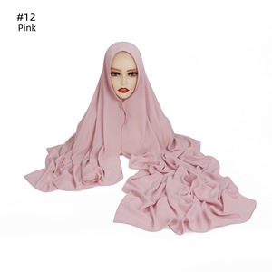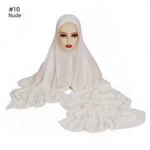 外贸高品质纯色丝滑厚雪纺长巾内置磁扣一体垂感方便包头围巾盖头