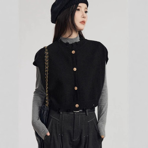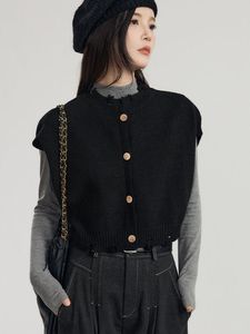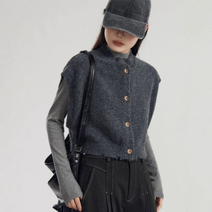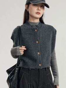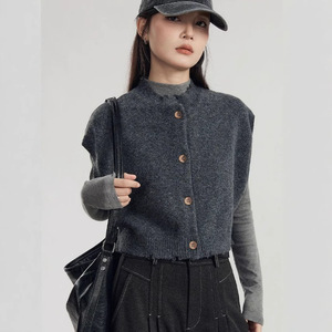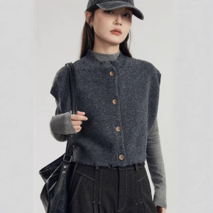 灰色外搭针织开衫马甲女春秋装毛边设计感宽松显瘦马夹背心女上衣