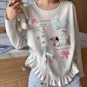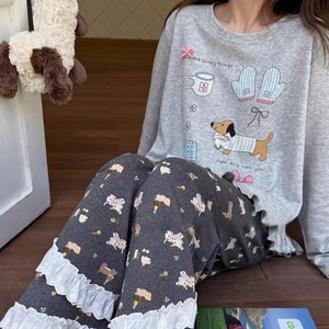 2025秋季新款 可爱卡通印花长袖长睡衣裤套装蕾丝家居服可外穿
