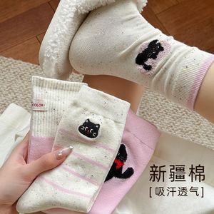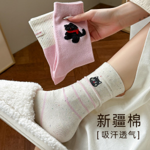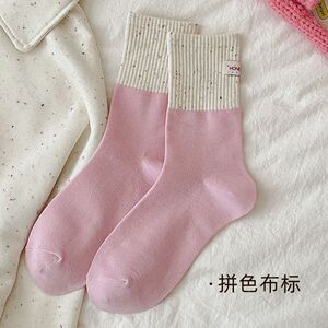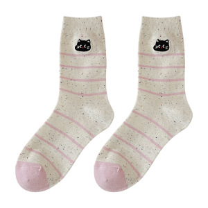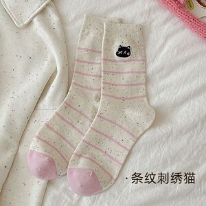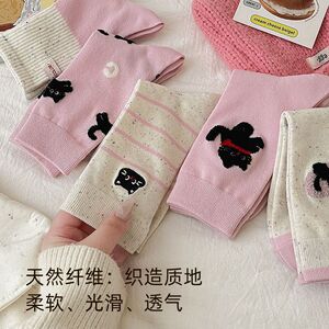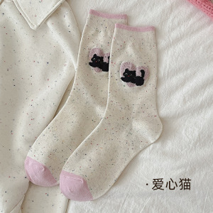 袜子女春秋中筒袜日系可爱卡通点子纱布标小猫咪堆堆袜诸暨棉袜子