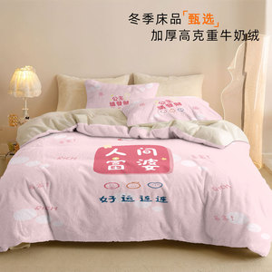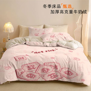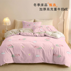 a类加厚牛奶绒四件套数码印花床单被套家用秋冬防静电短毛绒4件套