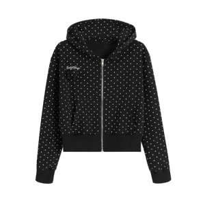 美式复古黑色波点字母印花开衫长袖卫衣女春秋百搭学院风气质外套