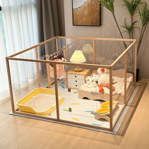 围栏实木狗笼子蘑菇防卡栅栏室内全透明宠物狗围栏小型犬无缝