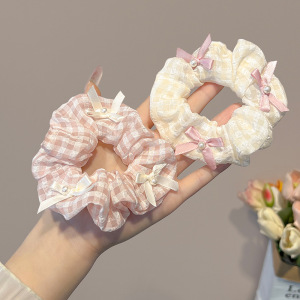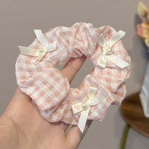 甜美粉白格子蝴蝶结大肠发圈2025年新款高颜值扎头发绳橡皮筋头饰