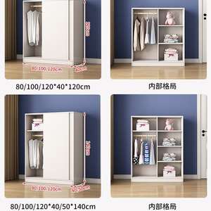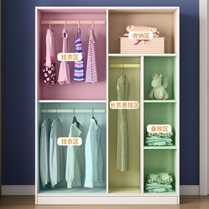 实木儿童衣柜家用卧室推拉门简约现代小户型移门衣橱收纳柜子简易