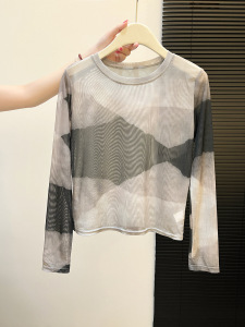 新中式国画扎染撞色设计感长袖网纱上衣早秋内搭外穿罩衫空调衫女