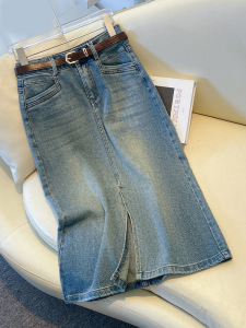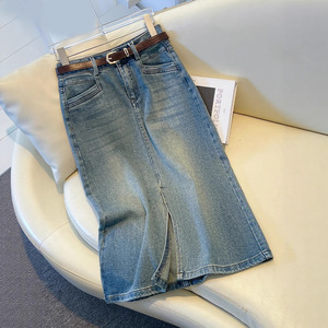 时尚半身牛仔裙女秋冬25新款遮肉高腰显瘦百搭修身显高垂感直筒裙