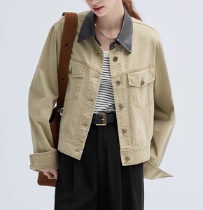 VEGA【现货】短外套女2025年秋季新款小个子复古拼接工装风牛仔上