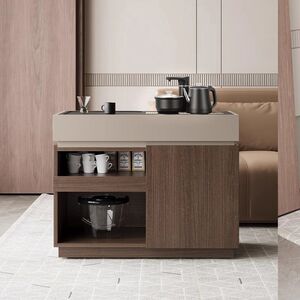 【右侧茶水柜+水壶套装*卡其色+胡桃木纹
