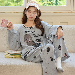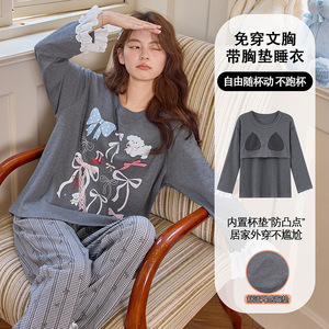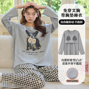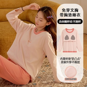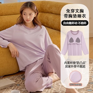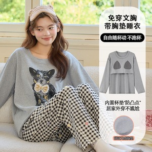 春秋冬季睡衣女士2025带胸垫长袖长裤套装学生少女休闲简约家居服