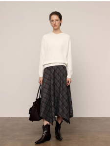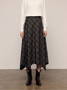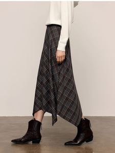 M**檬女装2025秋冬新款复古摩登格纹不规则A字半身裙5G9141551
