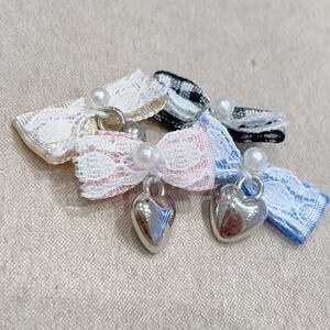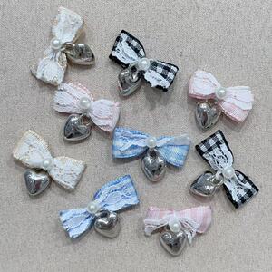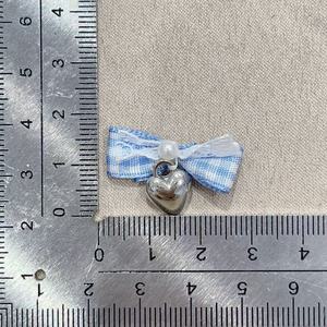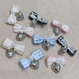2025新款格子布蕾丝蝴蝶结爱心吊坠饰品DIY配饰配件辅料