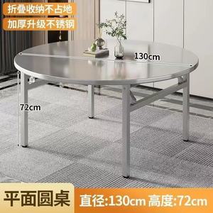 304不锈钢圆桌特厚吃饭桌子可折叠圆形特厚不锈钢桌流水酒席餐桌