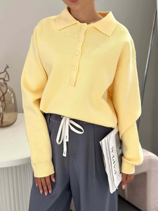 欧美批发2025冬季纽扣翻领针织衫简约百搭毛衣显白长袖外穿上衣