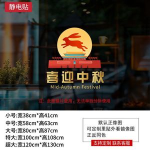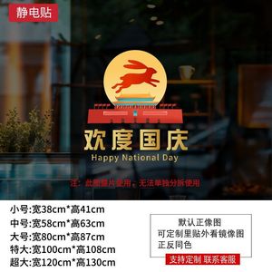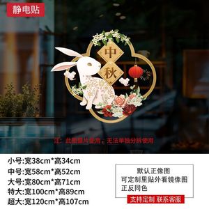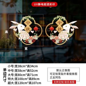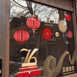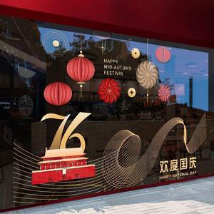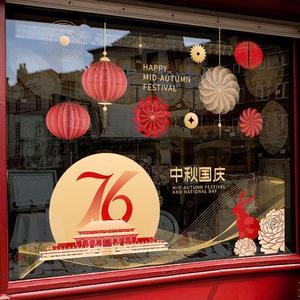 欢度国庆喜迎中秋玻璃橱窗装饰氛围场景窗花酒店公司银行物业贴画