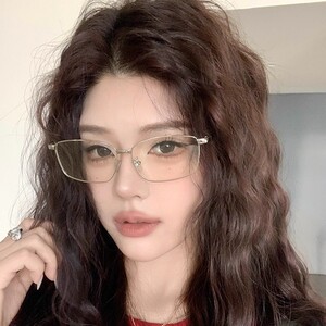 2025新款方框眼镜女士近视度数防蓝光超轻半钛素颜镜架清冷高级感