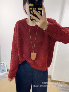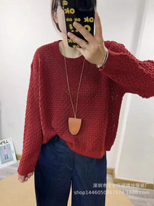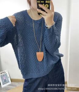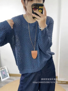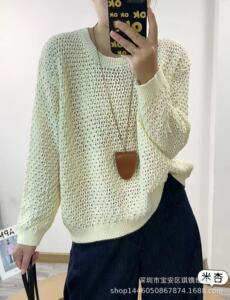 琪镌绘制秋季新款时尚长袖镂空针织衫毛衣百搭洋气设计上衣宽松版