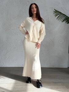欧美跨境休闲开衫套装 马海毛软糯长袖上衣直筒半身裙两件套女款