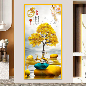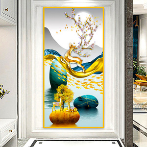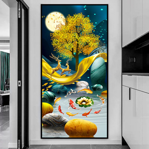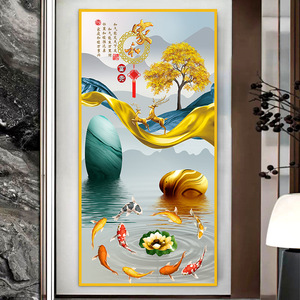 入户玄关装饰画正对门九鱼图走廊过道挂画轻奢背景墙贴画自粘壁画