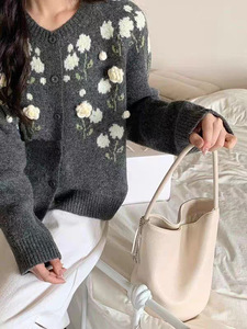 立体花朵温柔风设计感针织开衫2025秋冬新款甜美宽松毛衣外套女潮