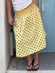 欧美时尚气质波点打揽两穿蝴蝶结A摆裙甜美清新风修身显瘦中裙