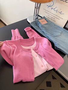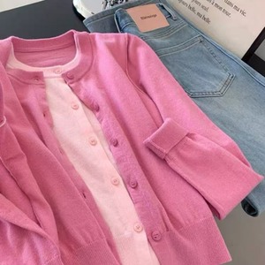 玫粉色假两件针织开衫女士2025新款小个子上衣高级感韩系早秋穿搭
