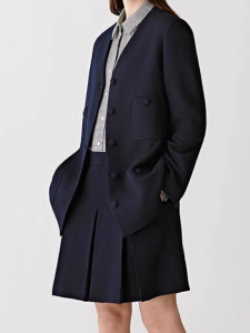 小禾女装2025秋季新款精纺弹力斜纹花呢中长款单排扣大衣外套