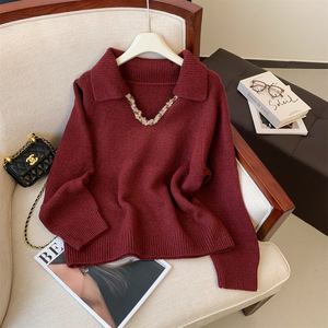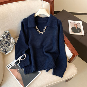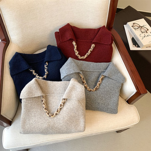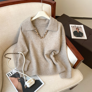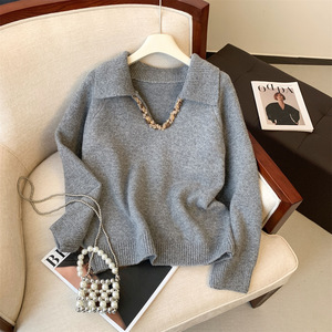 广州十三行高货爆款~翻领毛衣秋上衣复古宽松慵懒百搭显瘦针织衫