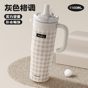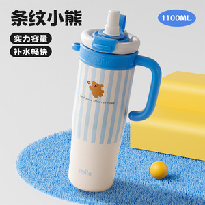 大容量冰霸杯316不锈钢带把手保冷保温杯卡通吸管杯超大容量