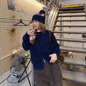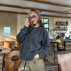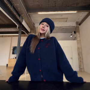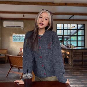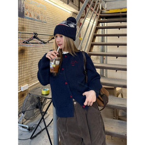 美式复古慵懒风针织毛衣开衫女秋季新款纽扣宽松圆领外套2024潮