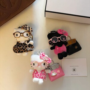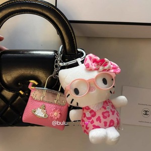少女心千禧樱花粉豹纹kitty玩偶背包挂件ins高颜值个性挂饰钥匙扣
