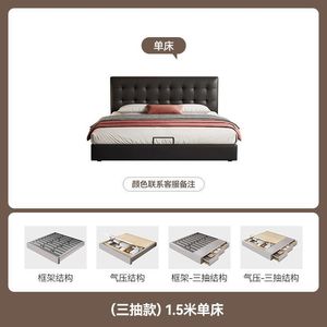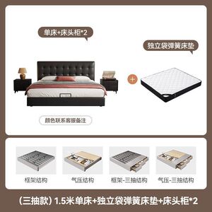 优质皮床+床头柜*2+护脊椰棕弹簧床垫.+三抽结构