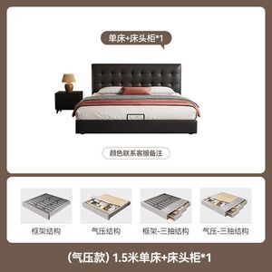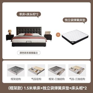 优质皮床+床头柜*2+护脊椰棕弹簧床垫.+气压结构