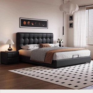 现代简约高端意式真皮床主卧1.5m1.8m双人床软包婚床面包床