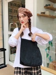 26151 复古灯芯绒纯黑色单肩斜挎包韩系学生文艺布袋大容量托特包