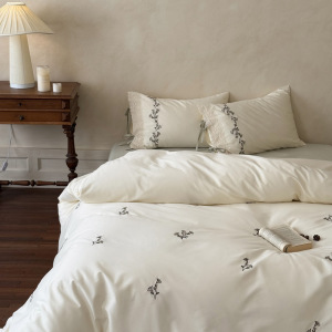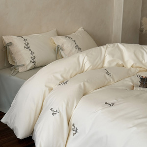 法式100S全棉磨毛精密刺绣四件套秋冬少女心保暖床上用品被套床单