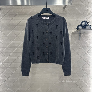 钉珠蝴蝶结装饰长袖针织衫 柔软舒适显瘦百搭圆领开衫秋 CW81659