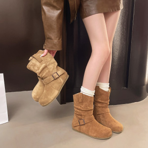 欧美大码绒面堆堆靴女2025秋冬新款圆头褶皱短靴女外贸丑萌马丁靴
