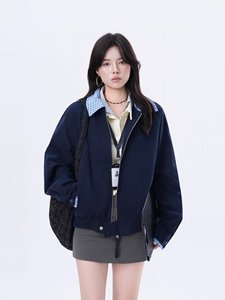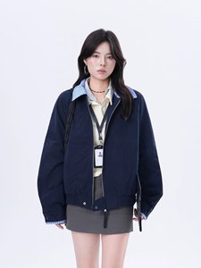 外贸时尚2025秋季新款日系复古格子拼接设计男女宽松休闲百搭夹克