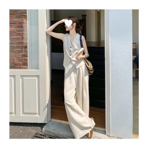 贝沐琪感老钱风亚麻套装女夏季2025薄款气质马甲阔腿裤两件套