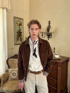 EME 豺狼同款经典复古麂皮绒感英式老钱风短宽正肩夹克外套男女