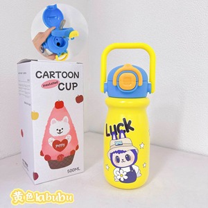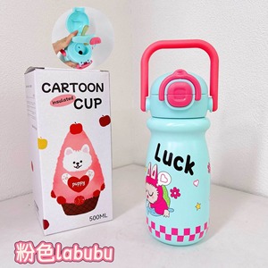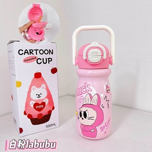 小奶狗卡通保温杯316不锈钢便携手提双饮杯儿童学生可爱吸管水杯