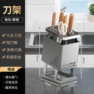刀架轻奢沥水刀座家用台面一体多功能厨房置物架斜插式刀具收纳架