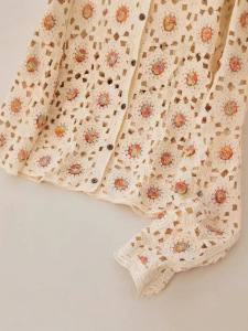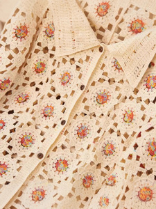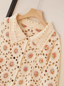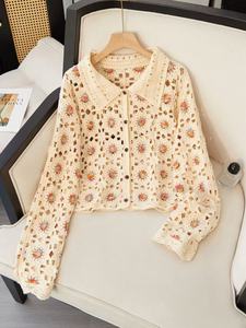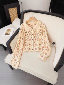 新款秋季复古钩花撞色短袖针织设计感小众别致短款上衣潮