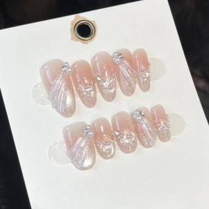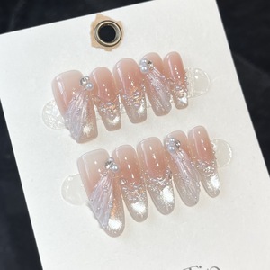 白月纱 纯手工穿戴甲温柔细闪猫眼纯白婚甲纯欲显白穿戴甲美甲贴