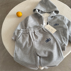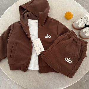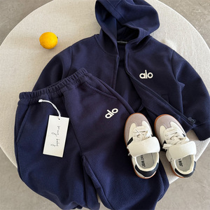 儿童套装2025秋季新品男女童装织里连帽卫衣套装宝宝字母两件套潮