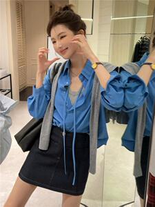 高品质~半岛序曲韩系极简纯色衬衫女秋冬新款宽松百搭上衣三件套