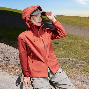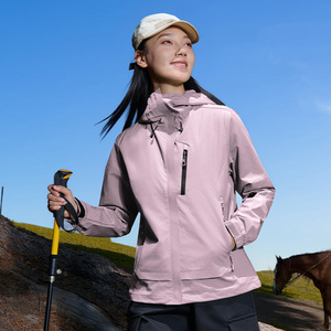 新款户外单层冲锋衣女连帽防风登山服外套春秋爬山露营轻量化夹克