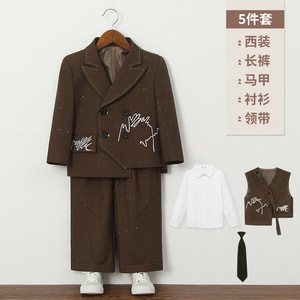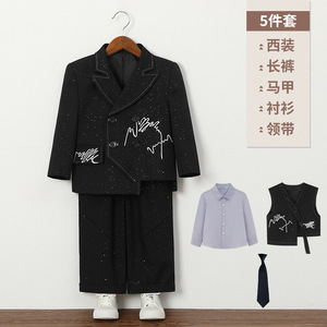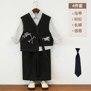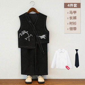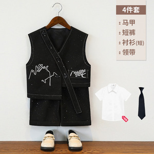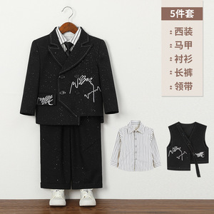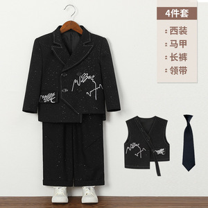 儿童西装复古满天星刺绣马甲男童设计感时尚西服外套花童周岁礼服