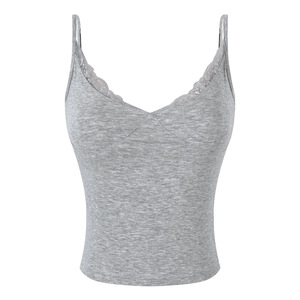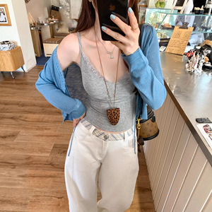 法式绝美灰色蕾丝拼接v领无袖吊带背心女2025夏季新款辣妹风上衣